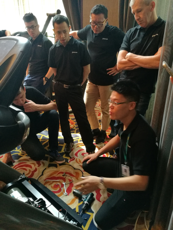 會上,張治國副總裁首先代表公司對參會客戶表示熱烈歡迎,并對舒華整體情況進行介紹。此外,高曉松副總經理針對舒華海外市場和代理商發(fā)展情況,為大家進行了深入剖析和講解。接下來的議程中,除了參觀舒華總部和臺商兩大生產基地,對售后故障的排除以及實操演練是本次培訓活動的主要亮點。舒華售后工程師專業(yè)、熟練的技能和熱情的講解給國際客戶留下深刻印象,生動詮釋了“服務創(chuàng)造價值”的主題內涵。會后,舒華同事帶領客人游覽泉州名勝古跡并在傍晚組織了篝火晚會,熱情洋溢的K歌比賽將晚會的氣氛推向高潮。