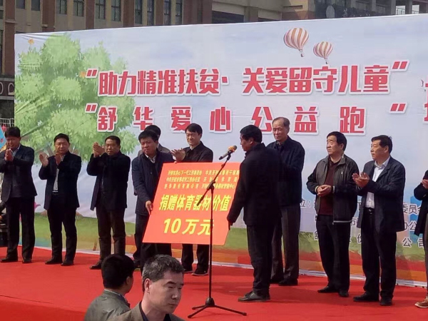 3月18日,“助力精準(zhǔn)扶貧?關(guān)愛留守兒童”暨“舒華公益跑”愛心捐贈儀式在河南省開封市金明廣場舉行。開封市原市人大副主任、市關(guān)工委常務(wù)副主任周慶根、原市人大副主任、市關(guān)工委常務(wù)副主任茹建國、市委老干部局、市委農(nóng)辦、市體育局等領(lǐng)導(dǎo)、舒華股份有限公司副總裁張維儉出席儀式,向市委老干部局精準(zhǔn)扶貧幫扶對象通許縣厲莊鄉(xiāng)前柏崗村捐贈價值10萬元的健身器材和體育用品。